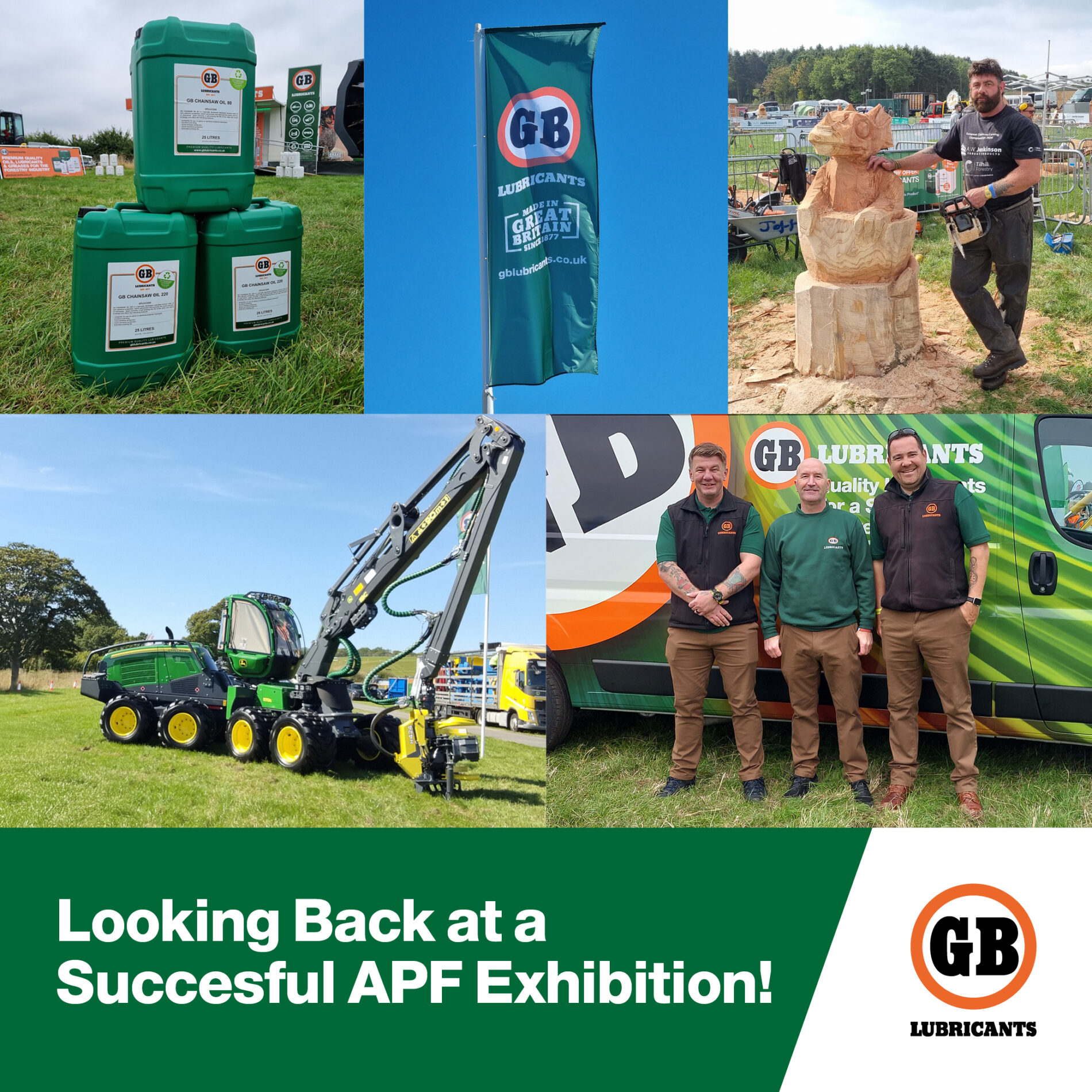 At the end of the APF exhibition Regional Sales & Marketing Manager, Amanda Byrne was pleased with the success of the GB Lubricants team. “The APF has yet again given us a great opportunity to discuss all the advancements GB Lubricants’ are making and working towards. Sustainability plays a major part in who we are and what we do. So being able to engage with our customers to showcase our sustainable production and recycled packaging, I hope puts GB Lubricants ahead as a forward-thinking company. Talking to the wider audience at the event allows us to demonstrate how GB Lubricants’ quality oils, greases and lubricants can help not only those working in the forestry sector, but also other industries like agricultural, off-highway, commercial vehicle and many more. We can’t wait to continue with the positive conversations we’ve had with both existing and new customers here at the event this year”.