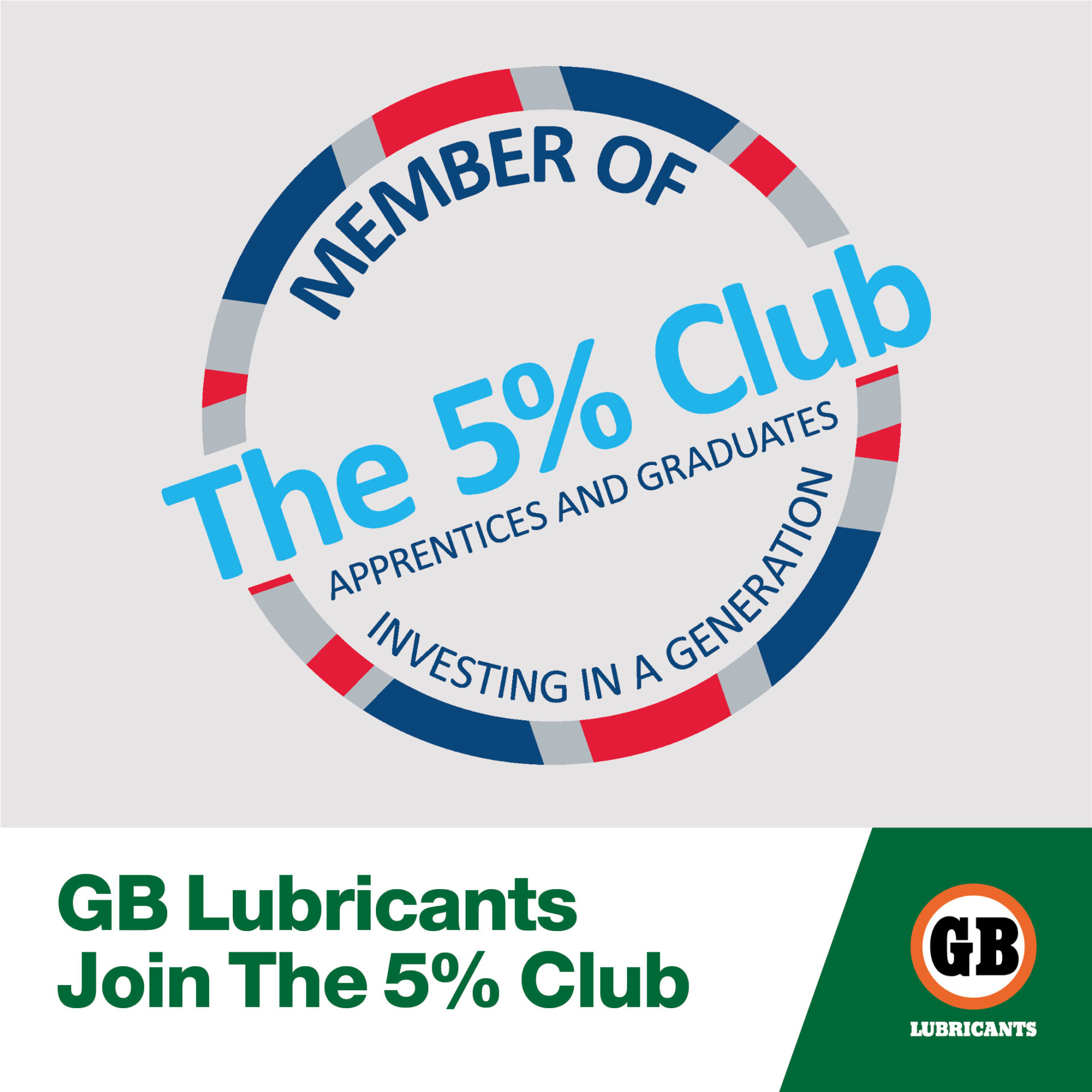 Being part of the 5% club means that GB Lubricants is aiming to have 5% of their workforce in Learn & Earn positions within five years of joining the organisation. Over the coming years, it will be interesting to see where the company strengthens next.